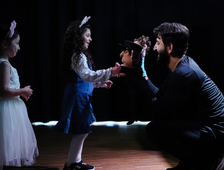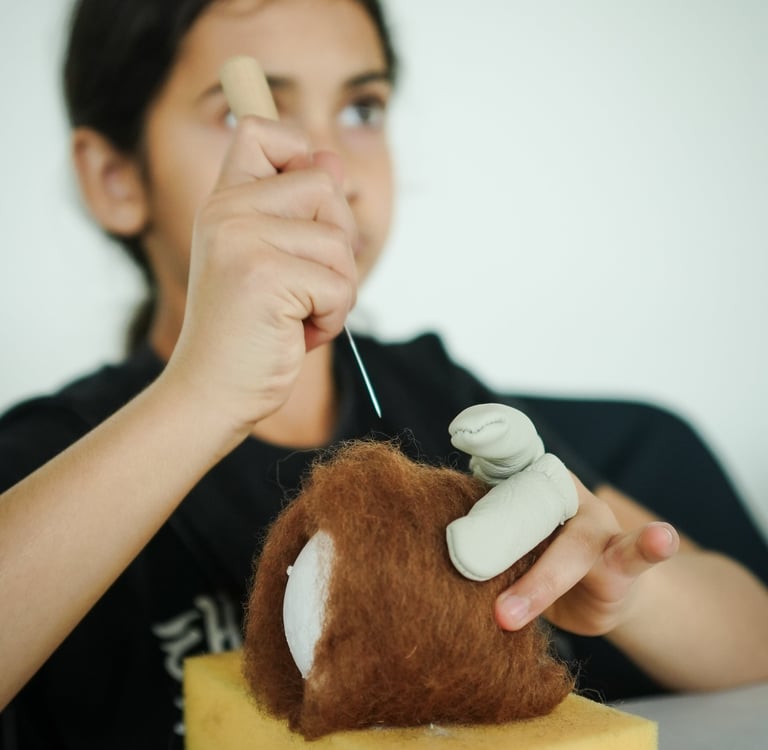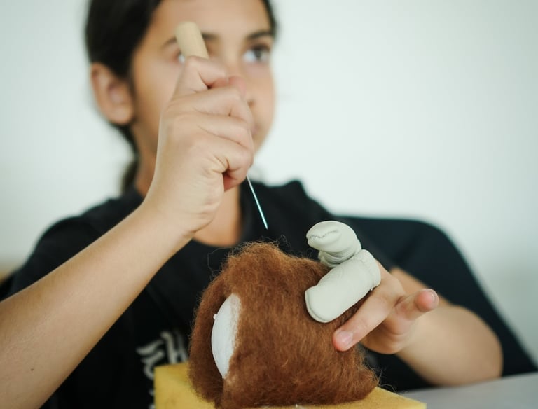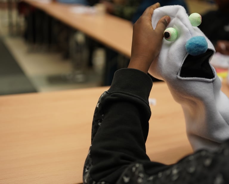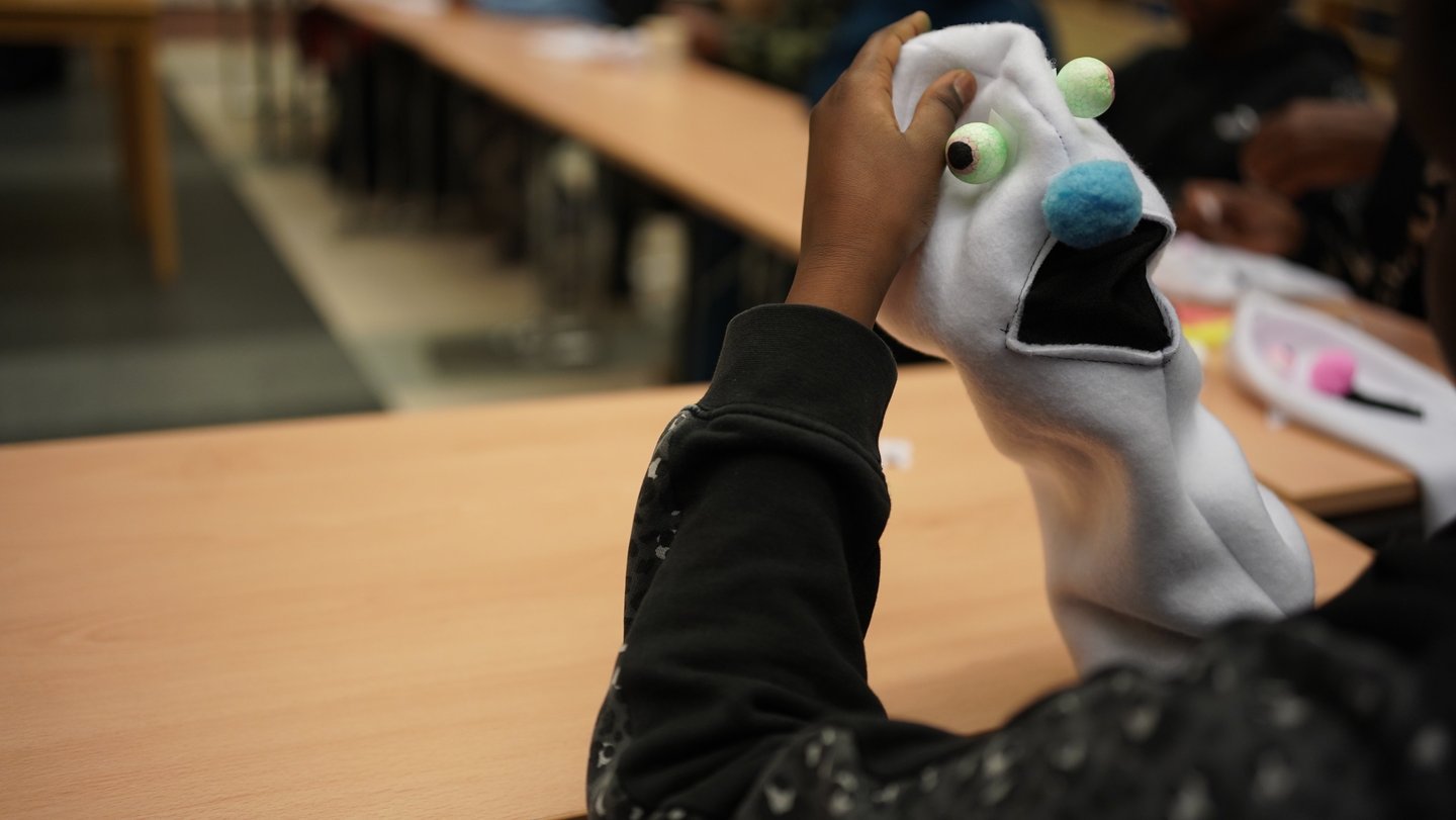 Workshops där deltagare skapar dockor och teater.